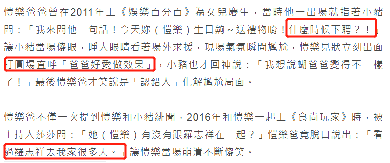 显然,凯勒的父亲已经看到了他女儿和罗志祥的关系,这就是为什么他在节目中如此公开地说。当问题出现时,罗志祥立即感到尴尬,只有在凯勒出来打球后,问题才得以解决。