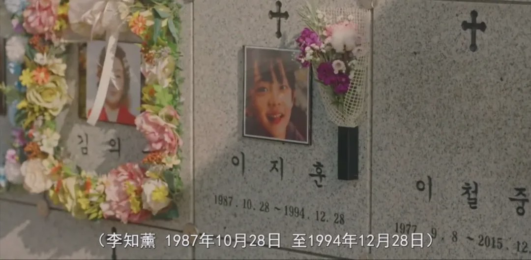 李志勋的母亲在她儿子去世的那一天去参加了纪念仪式,墓碑上写着她的生与死。