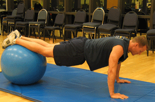 1.保持你的手平放在地上,脚放在球上,脊柱和头部成一直线。