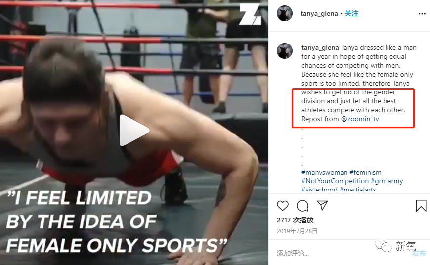 她决定在YouTube和INS上推广拳击,因为她认为自己在拳击馆训练时是个女人,所以受到了嘲笑和骚扰。