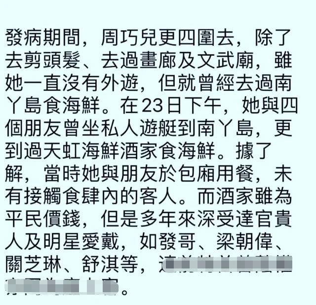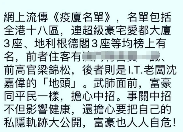 据悉,伏明霞夫妇以及邱淑贞夫妇都被波及,他们名下的豪宅被列入“强制隔离检疫”名单,有邻居接触过患。