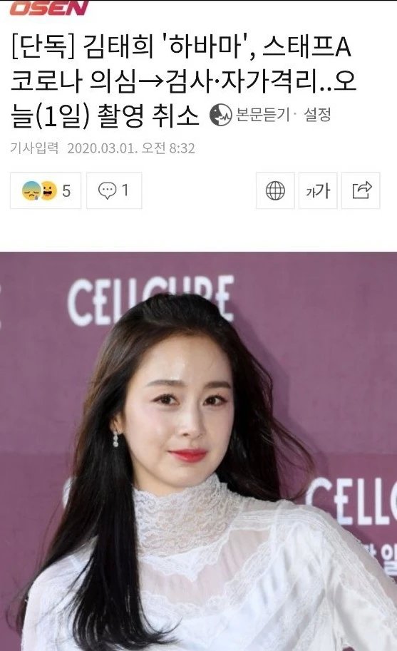 3月1日,据《OSEN》报道,金泰熙产后复出的新剧《hi bye,mama!》出现疑似病例。