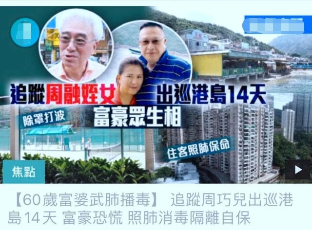 港媒报道指,很多富豪为此担心,不少人去医院检查肺部以及消毒自我隔离,一旦中招,希望能够提早得到治疗。