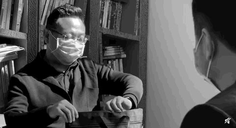 导演贾用黑白镜头记录了一次“参观”。口罩、体温计,见面时不要握手;接触前使用免洗消毒剂的细节展示了人们在流行期间的日常生活。