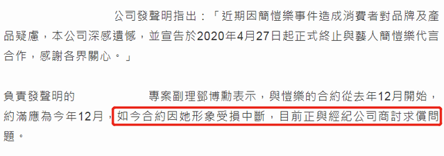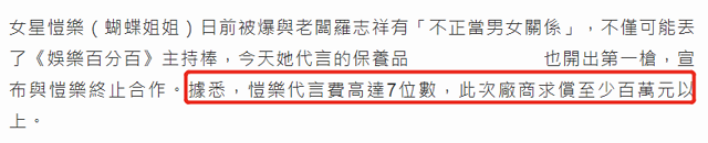 4月27日,台湾媒体报道,事件发生后,罗志祥的艺人凯勒被剥夺了她的历史,并认为她和罗志祥没有适当的关系。结果,凯勒的形象一落千丈,制造商现在取消了她的代言,并要求赔偿至少100万