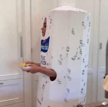 最近,水果姐通过她的社交账户分享了一段视频来宣传“我不小心”。在视频中,她变成了一个“洗手液”来仔细洗碗。后来,她端着一盘薯条走到门口,不得不侧身移动,以便顺利走出厨房。这幅画非常有趣和可爱。