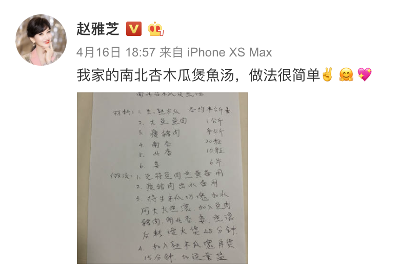 据报道,赵雅芝最近经常在社交平台上分享他的生活。4月15日,她还发了一张自己煮汤的照片,然后分享了菜单。现在,赵雅芝已经学会了网上购物和再次屏幕。看来女神的家庭生活很充实。