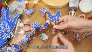 然而,洪雁用鹅毛、黄铜盘子、A4纸和其他材料制作的装饰品与真正的点翠一模一样。
