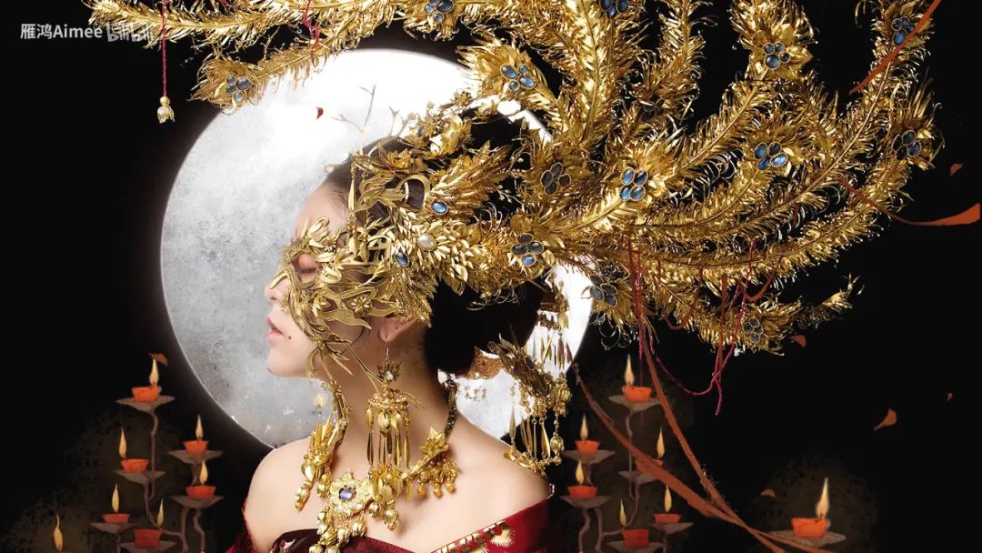 根据《山海经》中西王母的传说,“形似人,豹尾虎牙,善吹口哨”,将传统风格与欧洲图案相结合,打造出一个华丽大气的头饰。