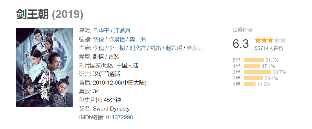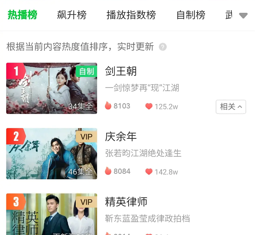 虽然“剑朝”并没有走出这个圈子,但它在艾奇艺术的流行上表现并不差,一度超过了“庆余年”(当时“庆余年”被关闭)。