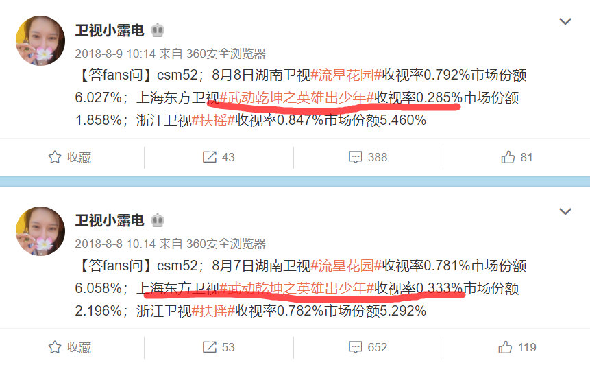 《天空之战》和《武东乾坤》几乎同时出现在星星上。他们被称为一对“烂兄弟和烂兄弟”。他们两人的名声都很差,收视率也很低。尽管《破空》的平均收视率为0.6%,高于《武东乾坤》,但在湖南卫视的每周影院中却很低。