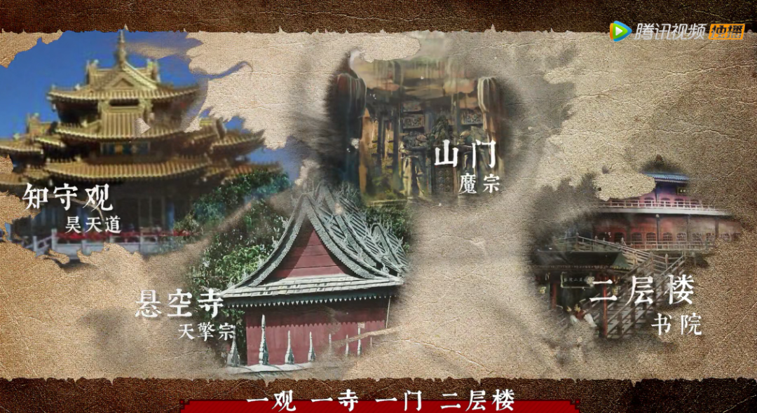 在又一段饶舌的话之后,将会有教派。“知命四大门派的僧人都藏在一个未知的地方,这个世界很难知道。它们有一个景观(昊天道观——智寿观),一个寺庙(天清宗玄空寺庙),一个门(魔宗——山门),和两层(书院——2层)”。