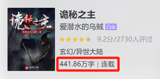 男性主导的小说的另一个典型特征是篇幅。一部小说通常有四五百万字长。