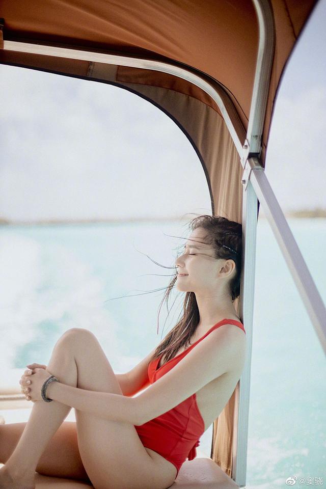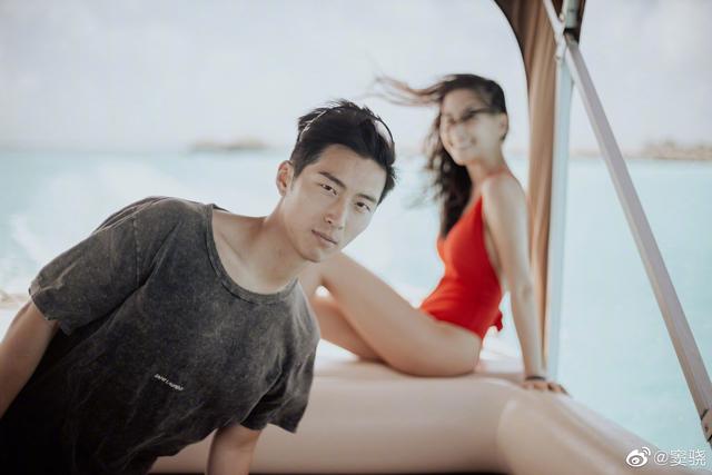 穿着红色性感泳衣的何超莲,一秒钟前还在拍美丽的照片。下一秒钟,窦晓带着严肃的表情和微微僵硬的动作走进了镜子,这让他的女朋友笑了。太有趣了。