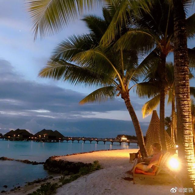 何超莲和窦晓坐在椰子树下,吹着海风,享受着夜晚的宁静。何超莲靠在男朋友的肩膀上,窦晓拥抱了他的女朋友。这幅画非常温暖。