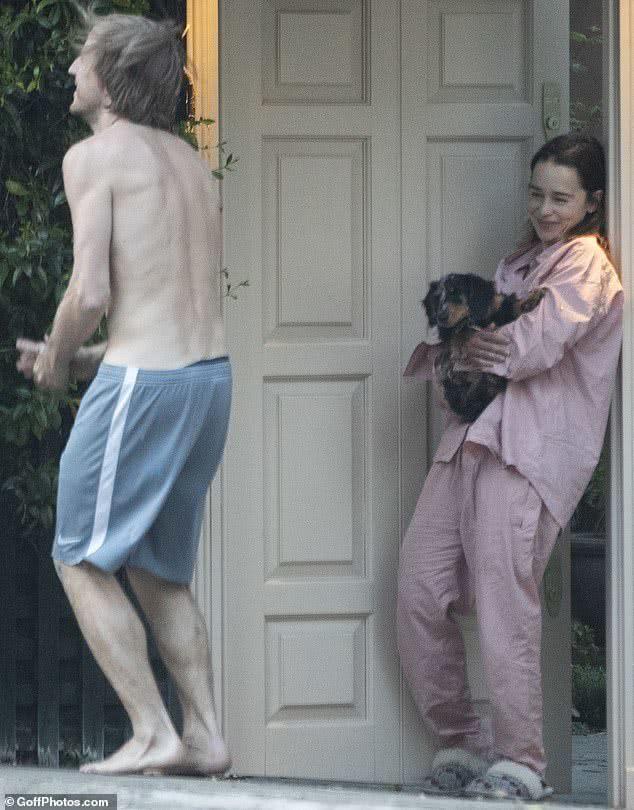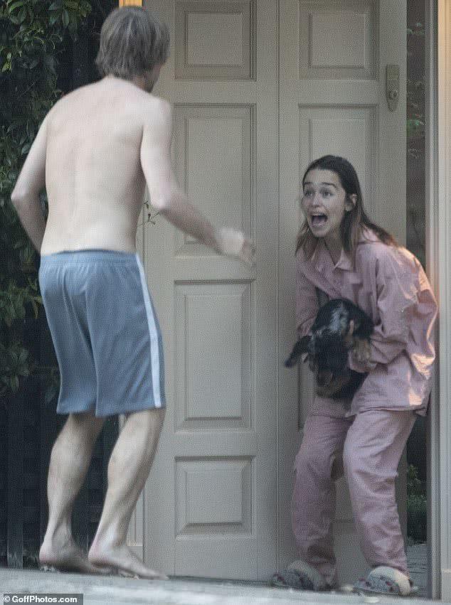 当地时间4月28日,因在《权力的游戏》中扮演“龙母”而广为人知的英国演员阿米莉亚·米德多特;艾米莉亚·克拉克出现在她伦敦的家门口,她穿着粉色睡衣,怀里抱着腊肠犬,看起来非常有趣,而她面前的这个赤膊男人尤其迷人。