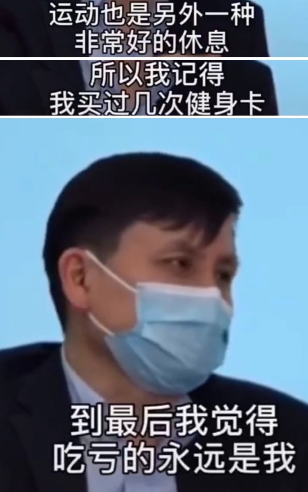 知道运动是很好的放松方式,可办了几次健身卡受伤的总是他:“有一次我买了健身卡,基本上一年也就去两、三次。还有一次买了用几个月,那个健身房马上就关掉了!”