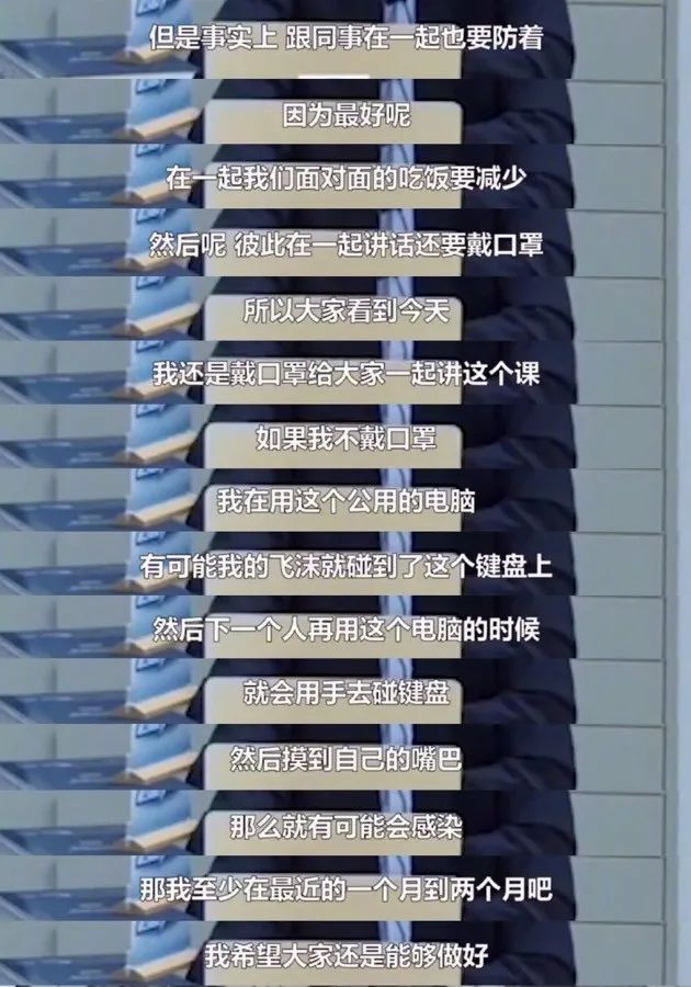 接下来还得继续听张医生的话,陆续开工后,不能松懈,防火防盗防同事。齐心协力打赢这场抗疫战,每个人能更快回归到正常生活中。
