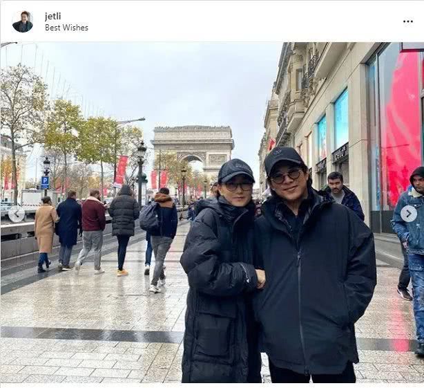 在李连杰的生日那天,还拍摄了这两个人在法国的照片。李妮娜带着李连杰,看起来像个小女人。