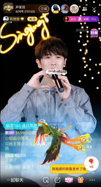4月23日,酷狗乐队一家迎来了“hi-sing音乐会”。陈、、于、熊、、南奎、梁佩全、魏亮、智韵和共表演了10组,每组都有自己独特的动作。他们用他们的音乐魅力帮助观众摆脱压力,一起振作起来。这位歌迷歌手充满激情,他的歌声让他想随着音乐起舞。直播室的气氛要变