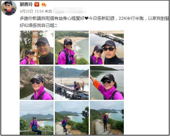 4月27日,香港著名女演员刘嘉玲在社交平台上分享了爬山的照片,并写道:“有时候这正是你所需要