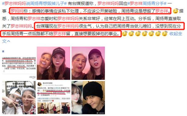 此前,台湾媒体报道称,罗志祥的母亲表达了对周扬青的不满,指责她毁了自己的儿子,并激怒了网民。现在,罗志祥的岳母也可能会发一条信息,表达她希望周扬青能放下这段悲伤的插曲,不再让小猪尴尬。似乎小猪周围的每个人都希望周扬清宽宏大量,但没有人真正想到周扬青。