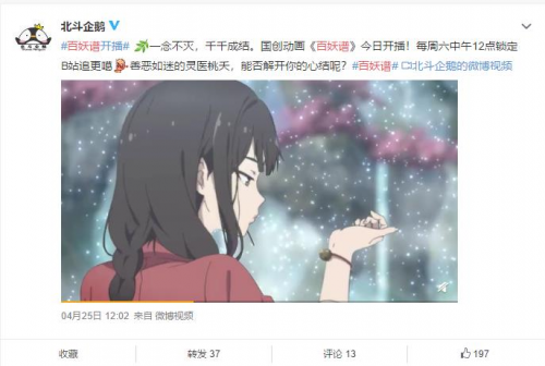 自《百鬼传奇》推出以来,网络的关注度持续上升,人气和口碑大丰收。首播当天,#白腰竹#话题在b站热门搜索中排名第3位,#白腰竹#话题在微博热门搜索中排名第33位,双话题在微博动画主题热门搜索中排名第2位,相关话题的阅读量超过1亿,讨论量达到10万以上,该片在豆瓣也获得了8分的高分。微博大V也呼吁大家一起帮忙。北斗企鹅、铅元素、纸飞机、艺术绘画、DC——特别大洲、阿克提斯、奇创社等众多业内大玩家和生产组织纷纷前来支持和支持,将作品讨论推向高潮。