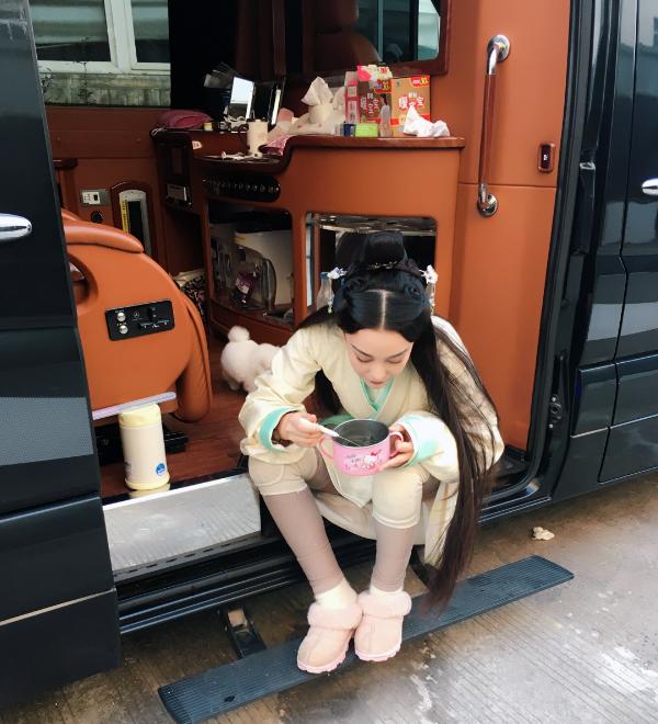 2015年9月,当她在片场拍摄时,她应该睡在这辆车内,车内豪华宽敞。