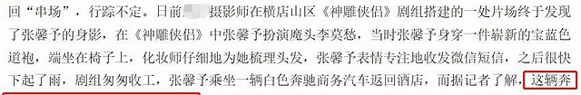 晚饭后,她和她的好朋友兼助手回到车上。男助手拿着一个巨大的相框。看起来不太方便。然而,走近张新宇的保姆车时,她发现她的车是一辆豪华的奔驰轿车,还可以放更大的东西。