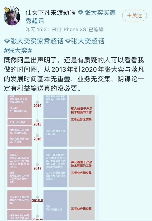 也有粉丝发表了一张照片,证明张大奕和范姜在2013年至2020年的职业生涯中没有重叠,他们的事业没有重叠,双方都是无辜的。