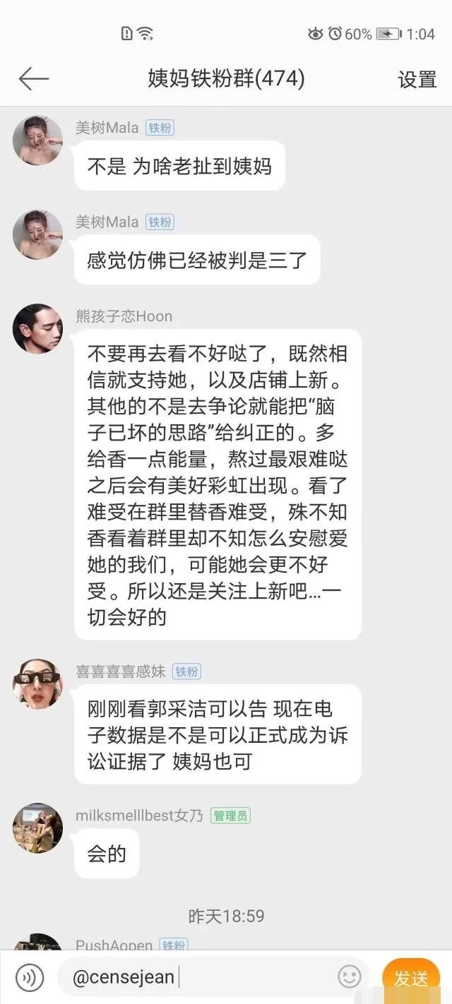 今天早上,一些网民在粉丝群中发布了张大奕的信息截图。