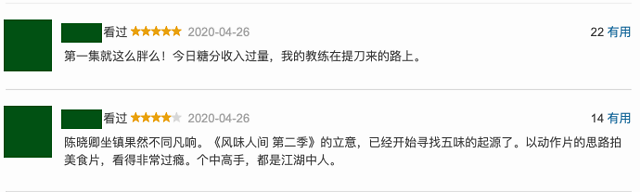 《风味》第二季首播后不到一个小时,网友们纷纷发表好评。