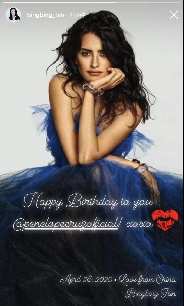 范冰冰是好莱坞演员佩内洛普·米德多。克鲁兹送上生日祝福。