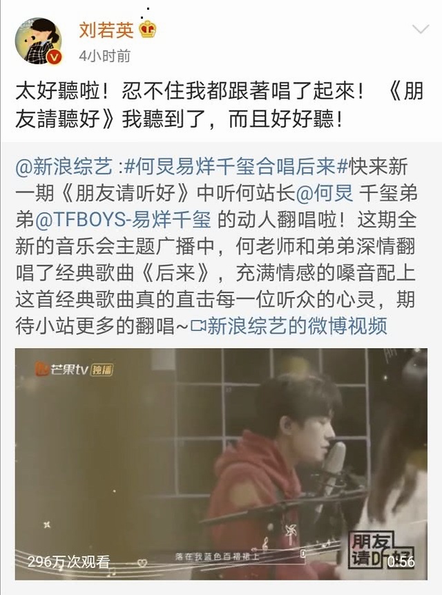 这两个人的童话封面演唱也得到了原歌手刘若英的认可,他转发了这首歌的赞美:“太好了,我忍不住跟着唱!”互动是非常可爱的。