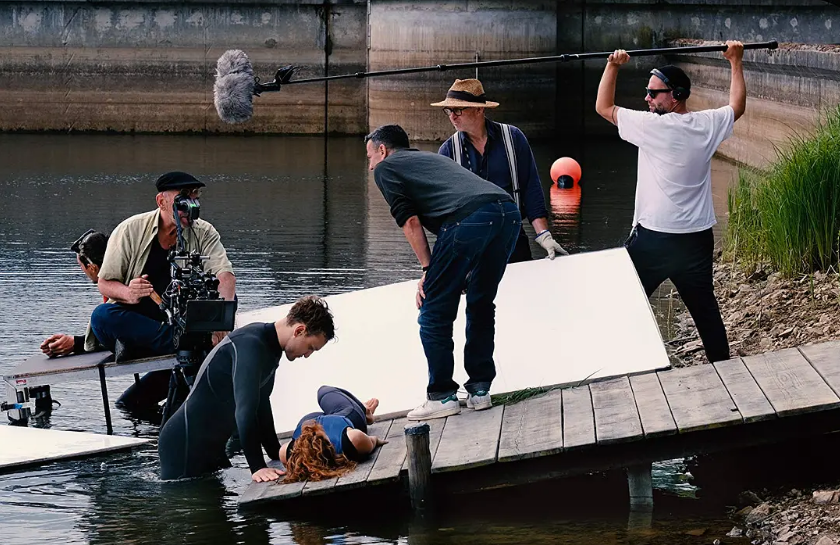 例如,有一个场景,弗兰兹想把我抬出水面。拍摄那天非常冷。他坐在我旁边的长椅上,但是当他抱起我的时候,我整个头都低了下来,所以当我被抬到岸边放下来的时候,我的脸上长满了头发,我感到非常尴尬!然而,导演也没有要一张卡。仍然是一个。