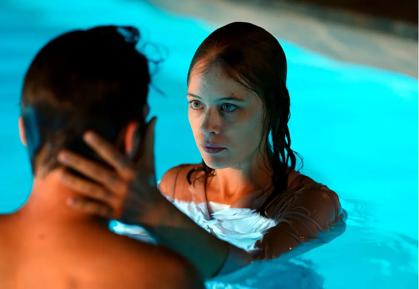 在第一个场景中,你可以感觉到这个场景很奇怪但是很紧张。一男一女面对面坐着。显然,这个女孩不开心。她在哭,但她非常努力地表现自己没事,让观众感到很困惑。然后她说,“如果你离开我,我会杀了你。”