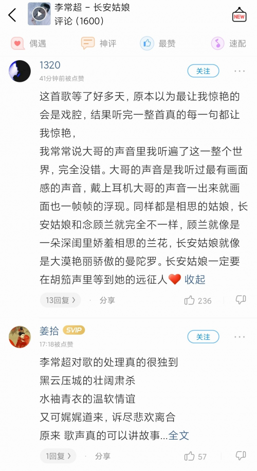人气爆棚的李长超曾参与在线综合节目《我爱第二度空间》,并赢得6.8亿张选票。典型的流行与力量并存。在演唱这首歌时,李长超将颤音的独特魅力融入到歌曲中很长一段时间,准确地打动了听众的心,使人们称他为“自己后期的不朽之声”。相继发行的《回忆》、《孤独之路》等作品,都赢得了国风音乐界的高度赞誉,使人们认识到这位低调的“寻宝歌手”。
