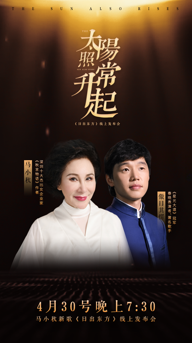 这两天,我的朋友圈被这张照片刷过了!起初,我不在乎。如果我仔细看看,这不是今年新任命的热门上市公司董事长马晓秋女士。的确如此。天啊,马小秋要创作一首新歌,名字叫《日出东方》。主题为“太阳照常升起”的大型在线会议将于4月30日晚举