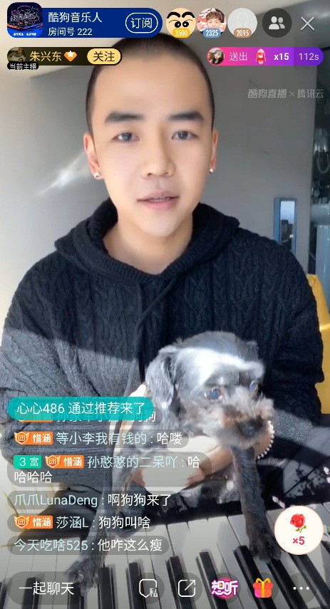 同一天,朱兴东带来了一场特殊的演奏和演唱表演。他的新发型看上去很清新。即使在玩的时候,他也充满了雅皮士的味道。高水平的何挑战性地把“阴天”唱成了“晴天的感觉”。通过现场改编歌曲的主唱部分,原本悲伤的歌曲变得轻松多了,充满了疗伤的感觉。令酷狗现场的网友们惊讶的是,朱兴东还和他的狗一起演奏和演唱了《小手放大手》。温暖的画面让人哭“太温暖了”。除了听歌,观众还吃了很多瓜。当观众问朱兴东最好的朋友陈洪磊时,朱兴东忍不住开玩笑说:“他除了和我一起喝咖啡,几乎没来过这里。我是感受的工具。”然而,在玩笑结束之前,朱兴东立即补充道,“事实上,他会经常给我送各种美味的食物。”朱兴东的对比表演也让观众忍不住取笑他“生存的欲望太强了”