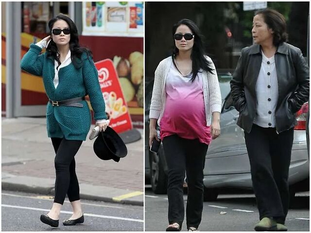 ▲洪婷兰身材娇小,只有156厘米高,中等身材;格兰特以前和一个长腿女人的关系是相反的类型。右图:当她怀上第二个孩子时,她和她的母亲经常被媒体拍照。