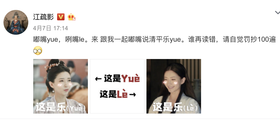 最近,电视剧《清平乐》很受欢迎。剧本标题中的“乐”这个词应该读作yu & egrave或l & eg love。?网民们说了很多。