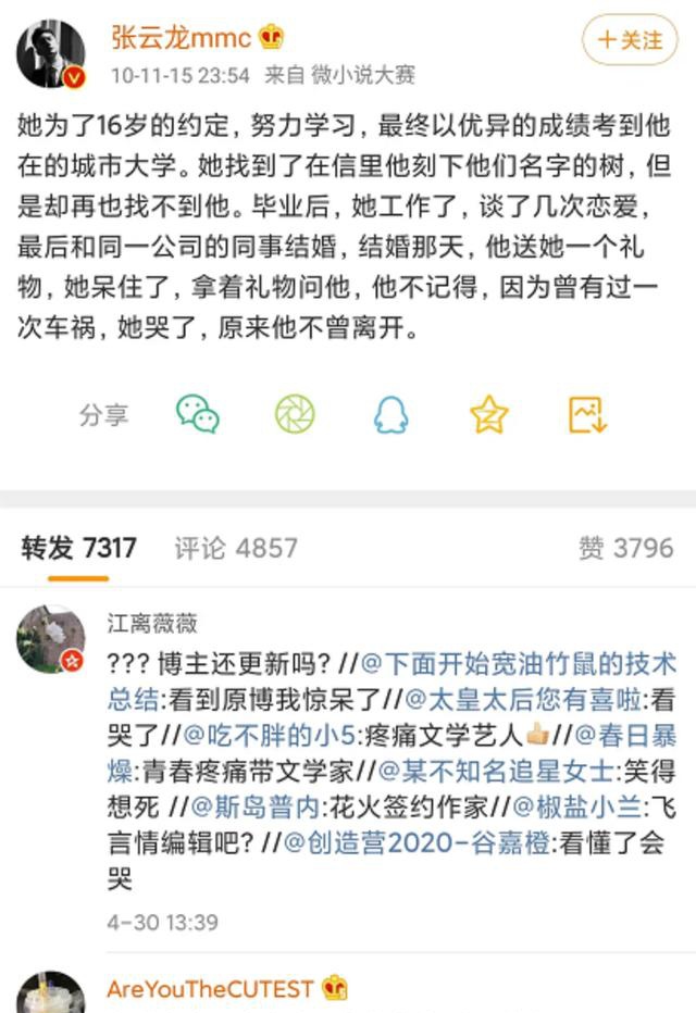 在那些被翻出的古老微博中,他有时会化身为浮华的青春和痛苦的文学专栏作家,而不会更新没有后续的内容。