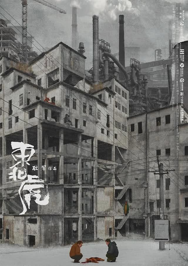 或者以完成的“西伯利亚虎”海报为例。在灰色调的图片中,图片的主体是一座破旧的工业建筑,前景是两个蜷缩在地上的人,还有一只看起来快要死了的狗。一名孕妇站在大楼的楼梯上。