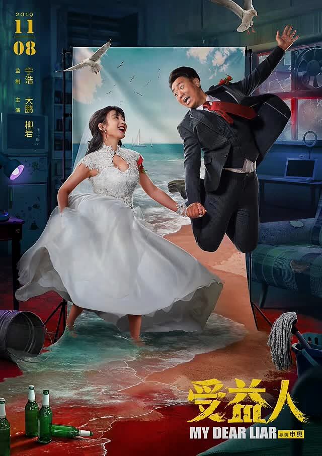 然而,电影《受益者》的海报首先向观众传达了一种无法掩饰的快乐。这部电影的两位主角设定了婚纱照的标准姿势,看上去很开心。