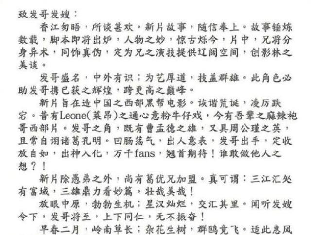 谢晋导演请姜文用男主持人的手写了一封信,“我想拍《芙蓉镇》,想请你试试秦的角色。并不是我不相信你的演技,而是因为你太年轻了,你读小说,然后带着0+的分数来到上海。”