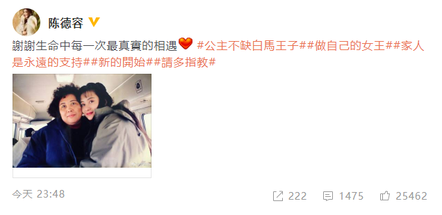 4月29日深夜,陈德容发布了一份回应离婚的文件,称“感谢你生命中的每一次真实相遇”在一次采访中,她透露她和王赞策有着不同的价值观和不同的观点,所以她直到生命的尽头都不能牵手。