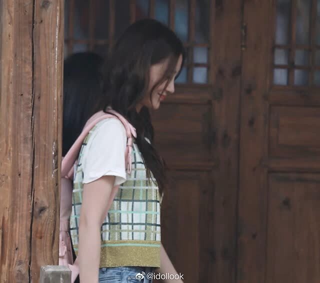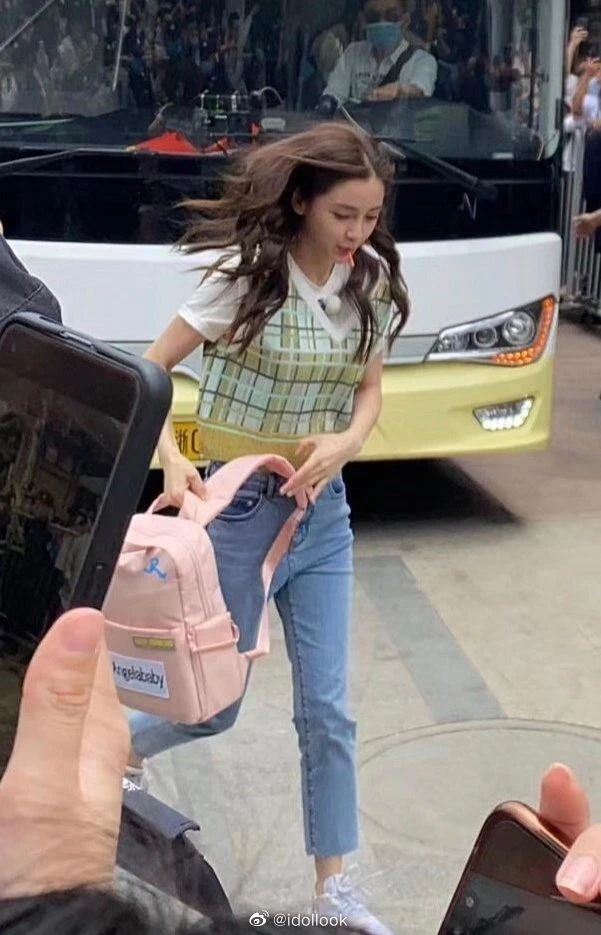 4月30日,一名网友跑到杭州杨颖录制综艺节目《奔跑》。婴儿穿着一件绿色方格背心和浅色牛仔裤,嘴里叼着一个粉红色的小包和一根棒棒糖。当她下了车,她热情地向每个人挥手问好。她很可