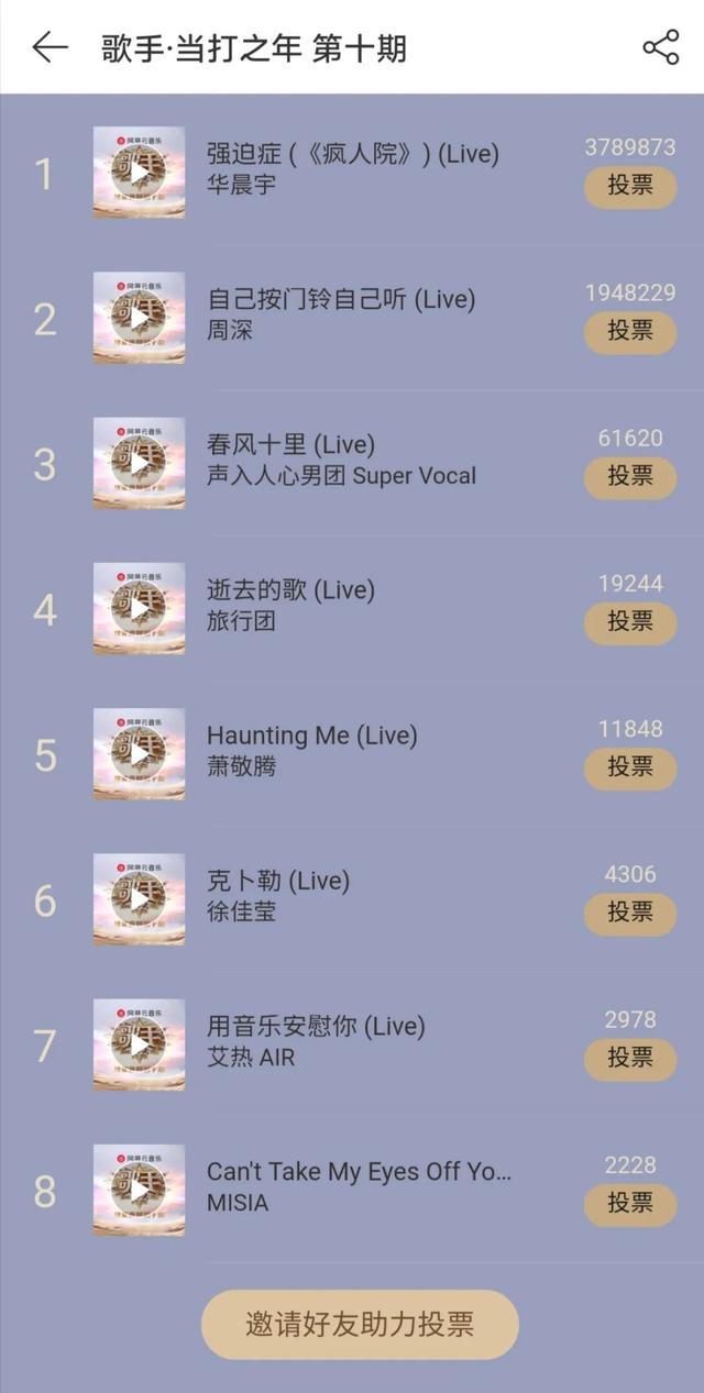 歌手的现场排名是竞争的一方,而网易云音乐反映了每个歌手和观众的另一方。