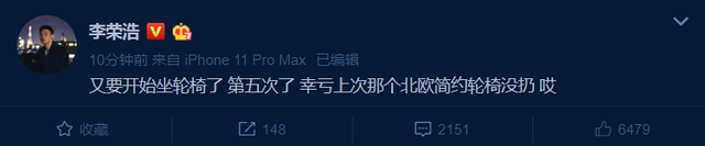 不久,李·重新编辑了新闻,并补充说“幸运的是,北欧简易轮椅没有被扔上一次”,它似乎真的受伤了。一些网民担心李是否厌倦了播放一首新歌。李·并没有改变他幽默的外表,他开玩笑说:“写歌就这么没用吗?”