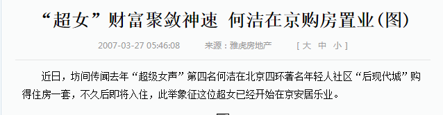 今年,何洁的工作量甚至超过了冠军李宇春。所有的发言人都与商演合作,甚至弯腰管理酒吧。当年品种效应与杨朝岳相当...在疯狂赚钱后,何洁于2006年在北京百子湾买了房产。
